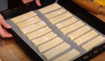 Мы рассказывали, как приготовить песочное печенье из мясорубки. Теперь делимся рецептом очень быстрой выпечки — хрустящих слоеных язычков из готового теста.