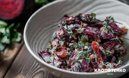 Перед подачей присыпаем салат зеленью. Также мы рассказывали, как из свеклы приготовить вкусную намазку к праздничному столу.