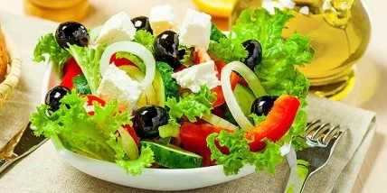 Самым популярным блюдом из Греции для всех европейцев стал классический греческий салат, который подают практически во всех современных ресторанах. Первый вариант этого рецепта затерялся среди океана его вариаций и экспериментов на кухнях. Однако есть основа греческого салата, которая должна быть неизменной – это свежие огурцы и помидоры, сыр фета и орегано. А особенностями рецепта его приготовления считают овощи, которые специально режут как можно крупнее. Сами греки при приготовлении классического салата Греческий чистят огурцы от кожуры и не всегда перемешивают блюдо перед подачей на стол, предпочитая это делать непосредственно перед едой.