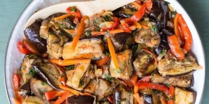 Превосходное сочетание баклажанов с перцем, морковью и луком, обжаренных в масле с пряными травами, создаёт неповторимых аромат и незабываемый вкус.