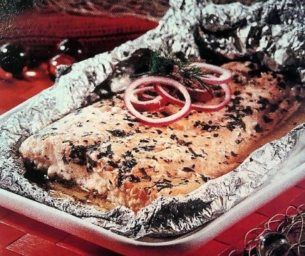 Состав продуктов для лосося, запеченного в духовке в фольге: