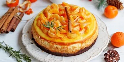 Десерт на Новый год: зимний чизкейк с мандаринами