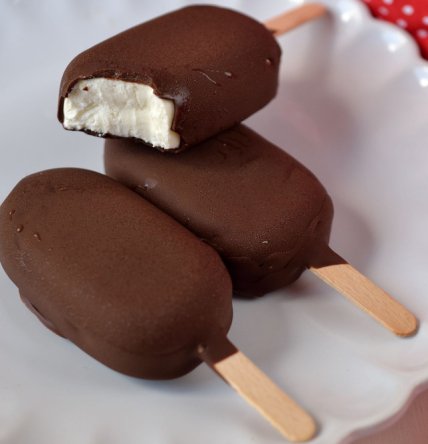 7. Формочки окатить кипятком и осторожно вынуть мороженое. Окунать его в теплую глазурь как можно быстрее и, достав, подержать в руке, пока не застынет.