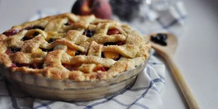 Самый сложный момент в приготовлении этого летнего пирога – тонко нарезать персики и красиво выложить их на поверхности теста.