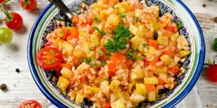 Рецепт дня: рис с кабачками, помидорами и морковью