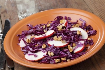 Рецепт дня: салат из краснокочанной капусты с яблоками и грецкими орехами