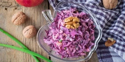 Рецепт дня: салат из краснокочанной капусты с яблоками и грецкими орехами