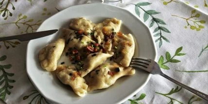 "Все- таки иногда так хочется чего- то очень калорийного и с "домашним духом", например вареников с грибами.