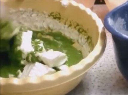 3. Добавляем во взбитые желтки пробитый шпинат, цедру лимона.