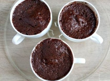 8. Поставьте чашки в микроволновку. Готовьте шоколадные кексы 3 минуты при мощности 800W.