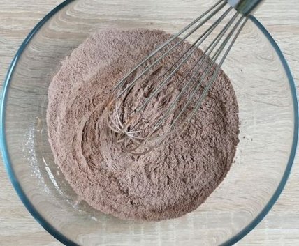 6. Венчиком быстро вымешайте однородное тесто, похожее по консистенции и цвету на растопленный шоколад.