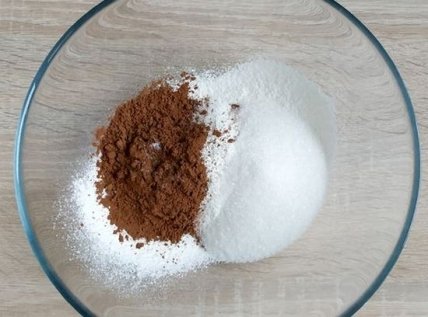 3. В просеянную муку всыпьте какао-порошок (не устану повторять, какао всегда используйте качественное!), сахар и соль.