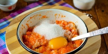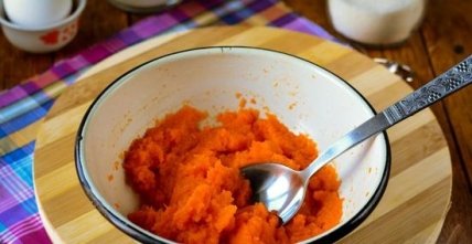 8 Маленький кусочек сливочного масла оставить для смазывания формы для выпечки, остальное масло добавить к моркови с рисом.
