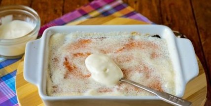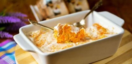 11 Еще теплую морковную запеканку с рисом смазать сметаной.