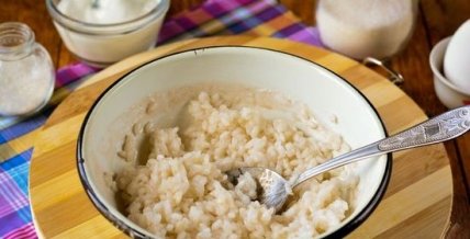 3 Рис промыть и залить водой (300 мл). Сварить вязкую рисовую кашу. Для этого на сильном огне довести до кипения, затем уменьшить огонь и варить рис 25 минут, периодически помешивая. Крышкой не накрывать.