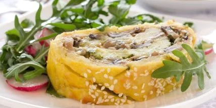 Нежные и в то же время сытные рулетики из картофельного теста с грибной начинкой.