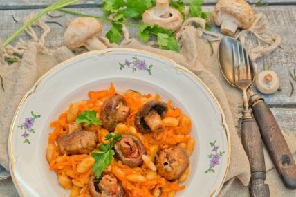 Рецепт дня: тушеная фасоль с грибами в сметанном соусе