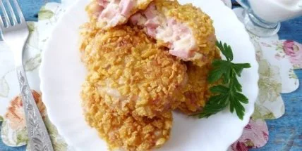Можно их даже назвать ленивые "Кордон блю", по вкусу чем-то похожи. Нежный расплавленный сыр, золотистая хрустящая корочка.