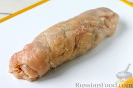 7 Взбейте куриное яйцо и смажьте им рулет из куриного филе или смочите.