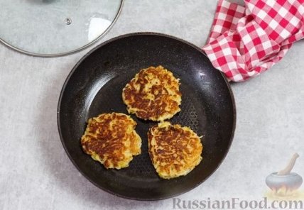 6 Затем переверните драники и обжарьте еще примерно 3 минуты с другой стороны.