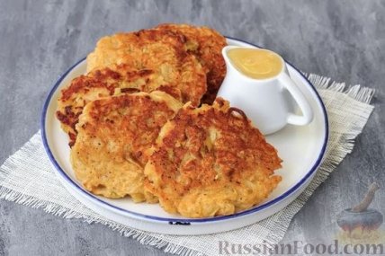 Яблочные драники готовы. Подавайте драники к столу горячими, дополнив медом или присыпав сахарной пудрой.