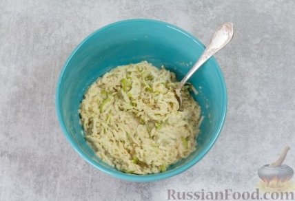 4 Еще раз все тщательно перемешайте. При таких пропорциях компонентов яблочные драники получатся чуть сладковатыми, однако больше сахара добавлять не стоит, иначе они будут подгорать.