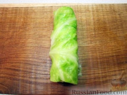 1 Капусту опускаем в кипящую воду. Молодую капусту варим 5-7 минут. если вода полностью не покрывает капусту, сначала провариваем 3-4 минуты с нижней части (где расположены более толстые части листьев). Затем кочан капусты переворачиваем и провариваем около 3 минут верхнюю часть кочана. Вынимаем кочан капусты из воды, даем немного остыть и разбираем его на листочки. Нам понадобится 9 листов капусты. если внутри листья еще остались плотными и плохо отделяются, процедуру повторяем. (если вы взяли капусту старого урожая, то варить ее нужно дольше, примерно 10-15 минут.)