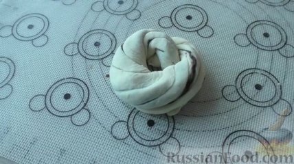 16 Сворачиваем жгут из теста узелком. Несколько движений и шикарная булочка готова! Таким образом формируем ещё пять булочек.