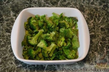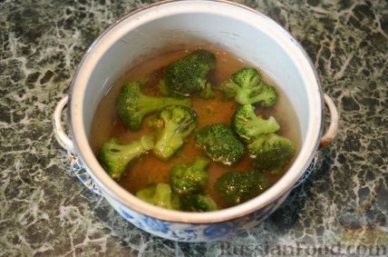 3 Брокколи отварите 7 минут в подсоленной воде. Затем воду слейте.