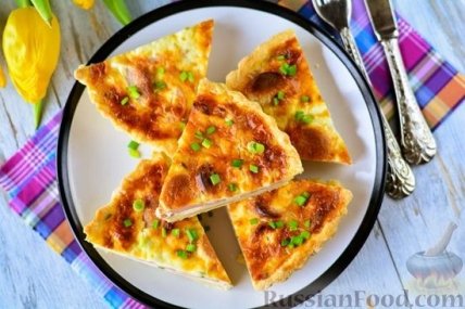 Рецепт дня: закусочный пирог с сосисками, сыром и зеленым луком