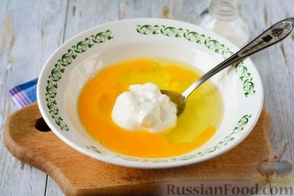 8 Для заливки смешать яйца и сметану.
