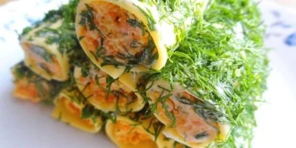 7 Сырные трубочки с морковной начинкой сразу подавать.