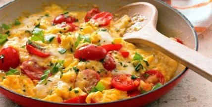 Рецепт дня: омлет-глазунья с колбасой, помидорами и сыром