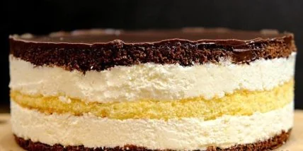 5. Если Вы делаете торт из 4 коржей, то разрежьте шоколадный и светлый корж пополам, а крем разделите на 3 части. Если из 3 коржей, то разрежьте большой шоколадный корж пополам, а крем разделите на 2 части. Далее собираем торт. Если из 4 коржей, то первым идет светлый корж, крем, шоколадный корж, крем, светлый корж, крем, шоколадный крем и глазурь. Если торт будет из 3 коржей: шоколадный корм, крем, светлый корж, крем, шоколадный корж и глазурь. Готовому торту дайте 2-3 часа постоять в холодильнике. Перед подачей достаньте заранее из холодильника, чтобы сливочное масло в креме немного подтаяло, тогда крем станет нежнейшим суфле.