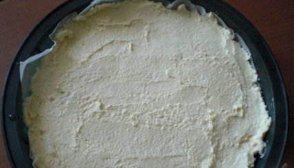 3 Выкладываем в форму для выпечки творожную массу, тщательно выравниваем,верх разглаживаем мокрой ложкой. Дно лучше выстелить бумагой для выпечки.