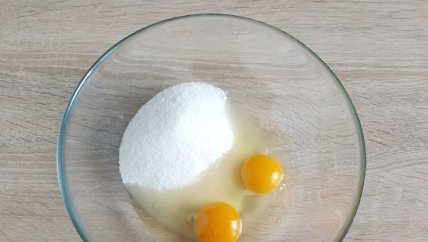 5 В другой миске соедините сахар и яйца.