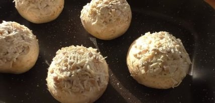 4. Фаршированные грибы отправляем в разогретую духовку минут на 25-30, температура 180 градусов.