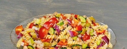 Кулинарный рецепт: Теплый салат с пастой и тунцом