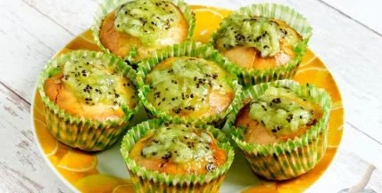 7. Выпекайте маффины с киви и белым шоколадом в духовке около 25 минут.