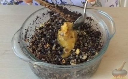 Орехи очищаем от шелухи, слегка перетирая руками. Мак смешиваем с сахаром и перетираем в ступке, пока не начнет выделяться белая жидкость.