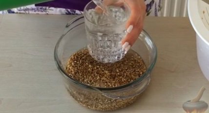 Заливаем пшеницу 2-мя стаканами воды.