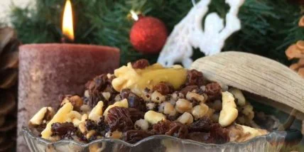 Вариантов приготовления рождественской кутьи существует очень много. Предлагаем приготовить кутью из пшеницы, с маком, изюмом, грецкими орехами и медом.