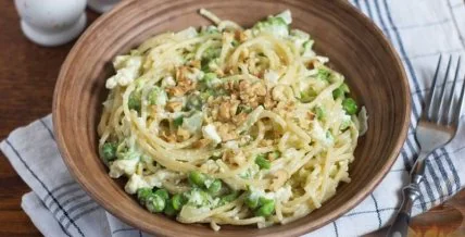 Рецепт дня: спагетти с зеленым горошком и сыром