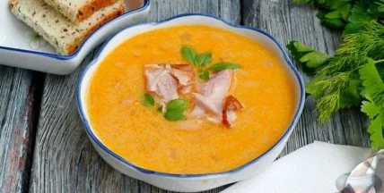 Рецепт дня: сырный суп с копченым окорочком и молоком