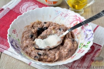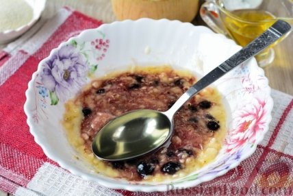 5 Всыпать манную крупу и перемешать. Оставить на столе на 15-20 минут, чтобы манка набухла.