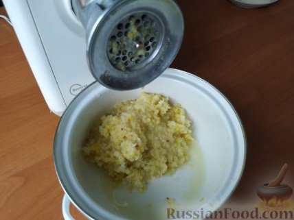 10 Добавляем к лимонам сахар и манную крупу, перемешиваем. Не взбивайте блендером - будет очень много сока. По этой же причине мы не готовим начинку заранее, а приступаем к ней, когда тесто уже готово.