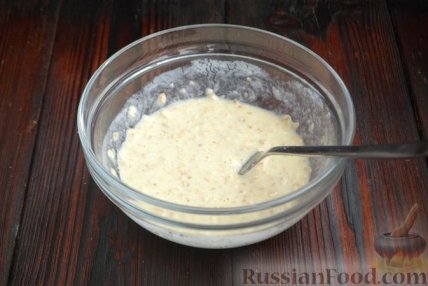 3 Перемешайте и оставьте примерно на 5-6 минут, чтобы овсяные хлопья набухли.