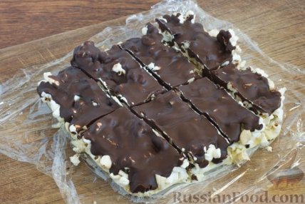 6 Поставьте форму на 2-3 часа в холодильник. Аккуратно достаньте десерт из формы и разрежьте на порционные батончики.