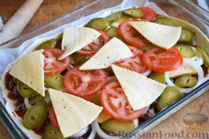 Рецепт дня: Пирог "Чизбургер" с мясным фаршем, овощами и сыром