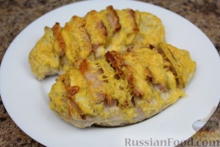 8 Запечённое куриное филе с беконом и яблоком готово.